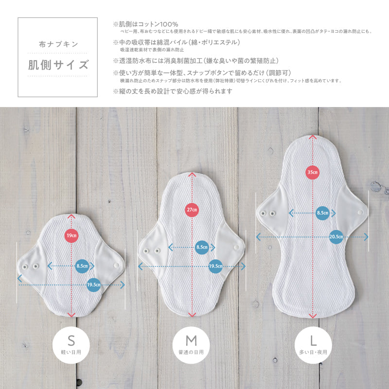 普通の日はMサイズの布ナプキン、少なめの日はSサイズの布ナプキンがおすすめです。
