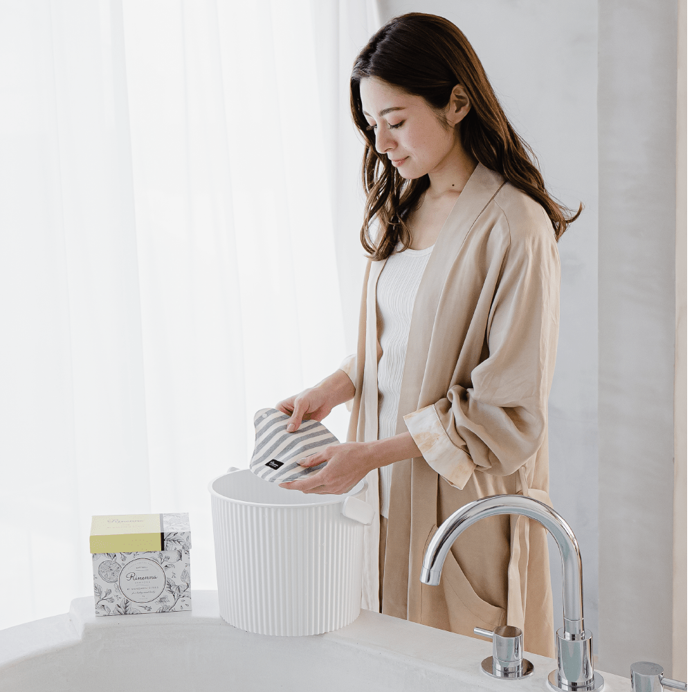 Rinenna#1なら、もみ洗いなどの予洗いをせずとも簡単につけ置き洗いでOK。