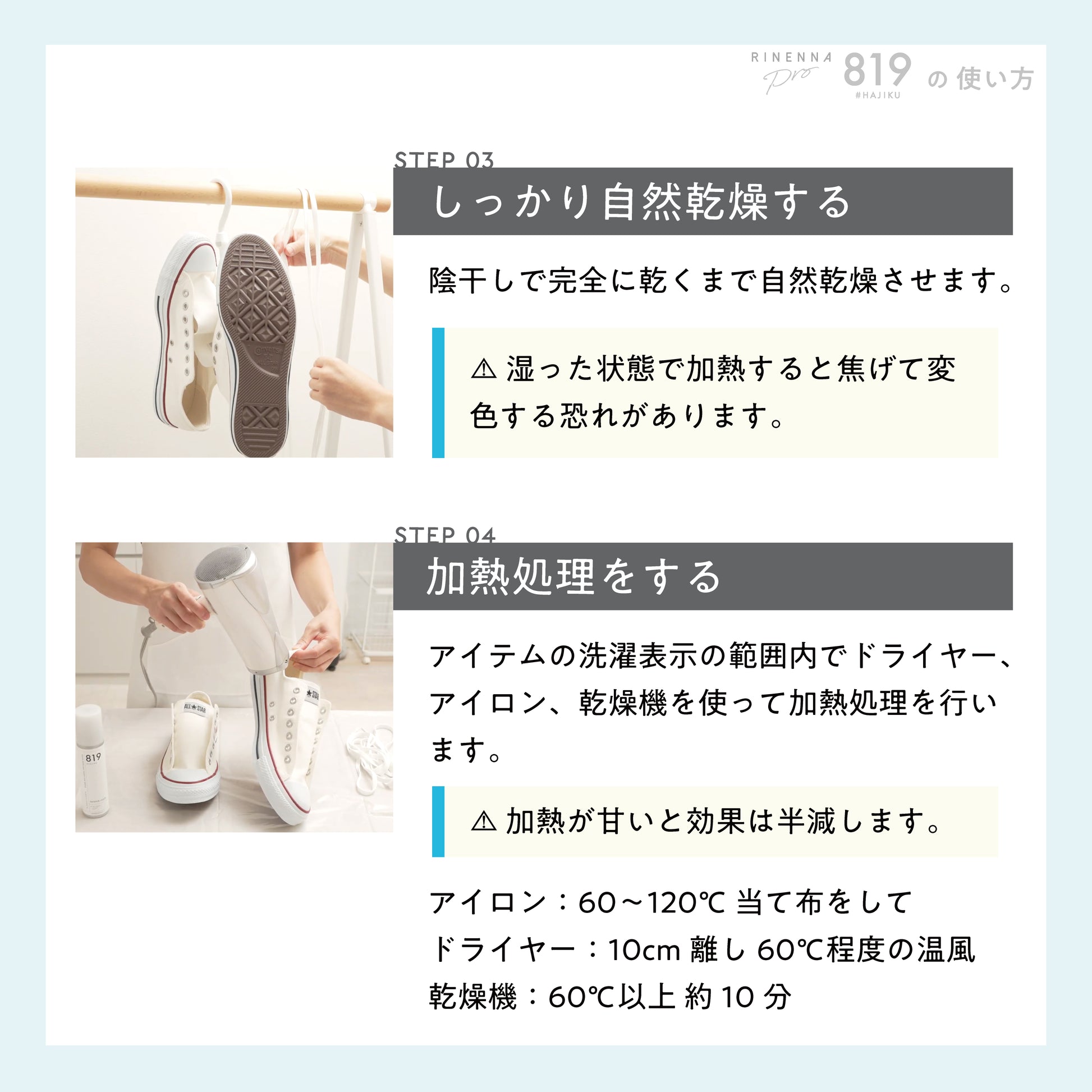 VOCの代わりに加熱処理で撥水力を定着させる仕組み。しっかり手順を踏めば、高い効果が得られます。