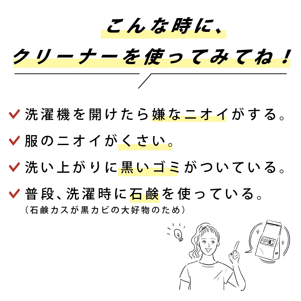 ・初めての使用や汚れがひどい場合、1回の使用で取りきれず、汚れが出続けることがあります。その時はもう一度洗濯槽クリーナー Rinenna#3 TUB CLEANERをお使いください。