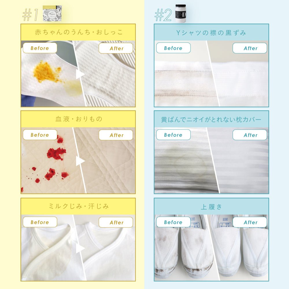 ・この製品は漂白剤(酸素系)を配合しています。漂白剤使用不可の洗濯表示のある衣類には使用しないでください。