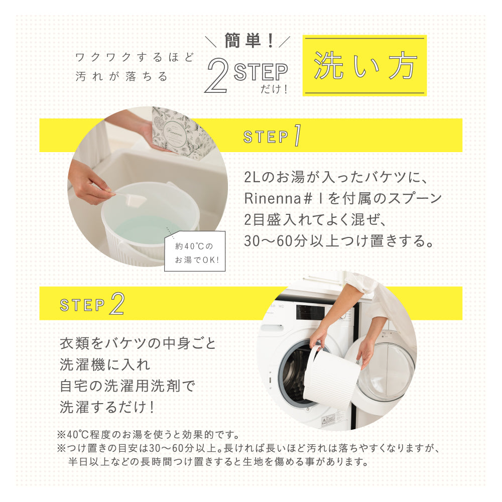 ・24時間以上のつけ置きは、生地が痛む恐れや、再汚染の恐れがございます。(12時間以下のつけ置きをおすすめいたします。)