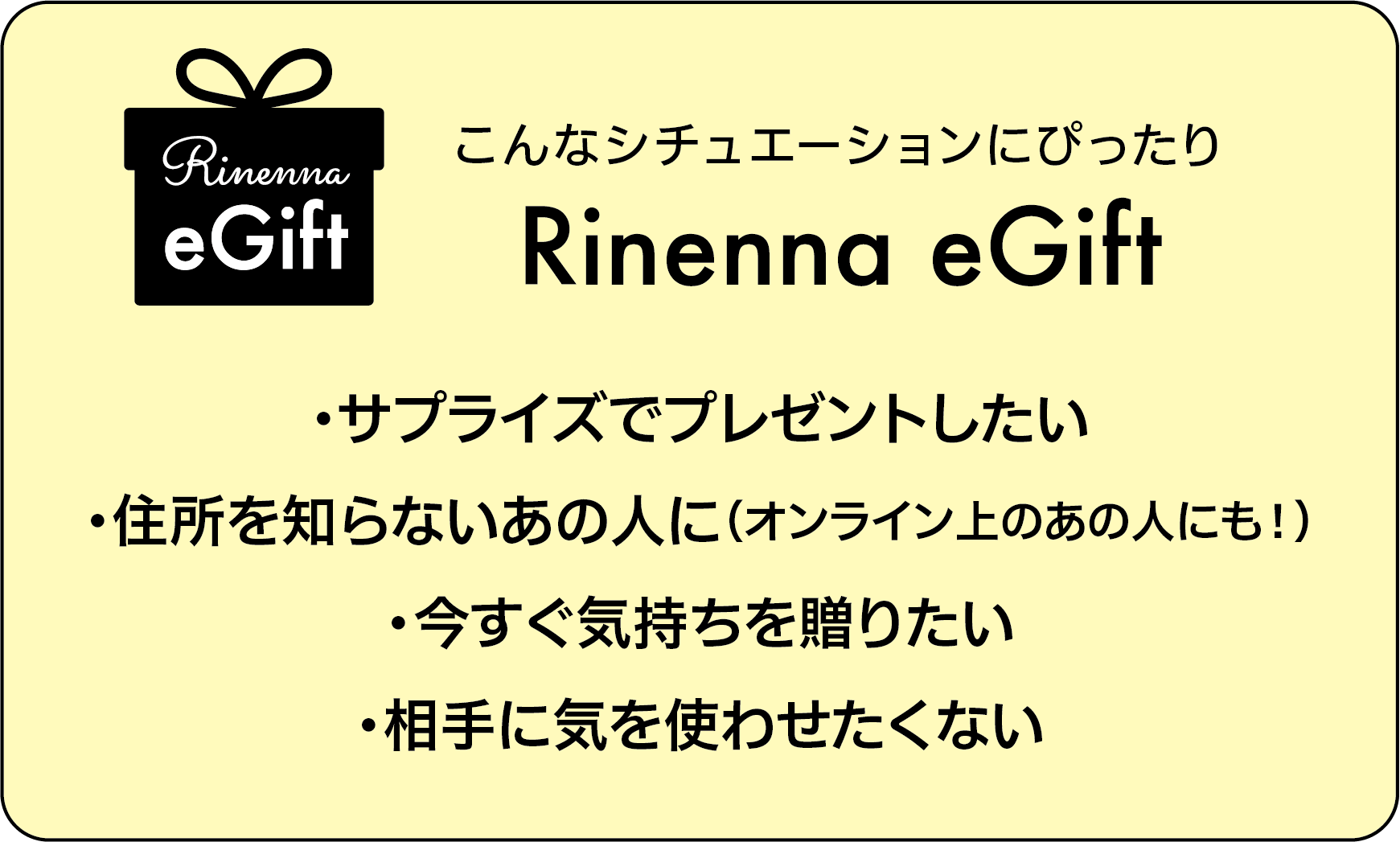 Rinennaオリジナルのギフトパッケージにてお届けさせていただきます。
