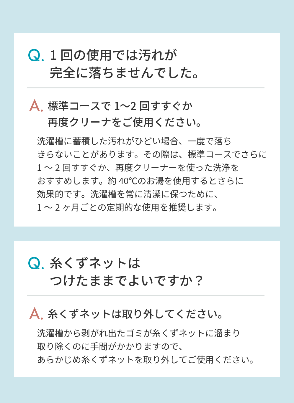 → 洗剤が溶けきっていないと、効果が十分に発揮されません。
